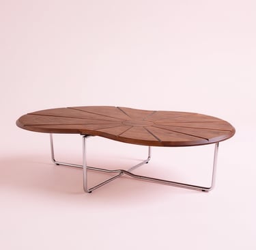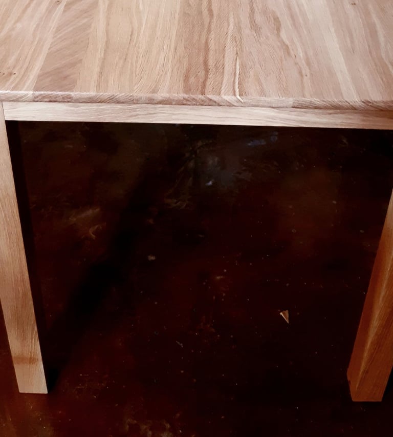 Une cliente avait une table basse avec un plateau laqué jaune qui n'avait pas résisté au passage du temps. Le plateau en mdf avait gonflé avec l'eau et n'était plus utilisable, cependant elle souhaitait conserver le piètement tout en me précisant que j'avais carte blanche pour créer un nouveau plateau.